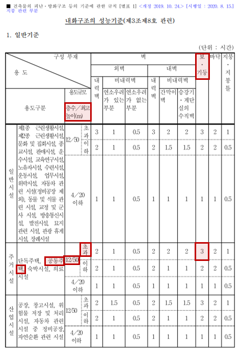 [별표 1] 내화구조의 성능기준 (제3조 제8호 관련)